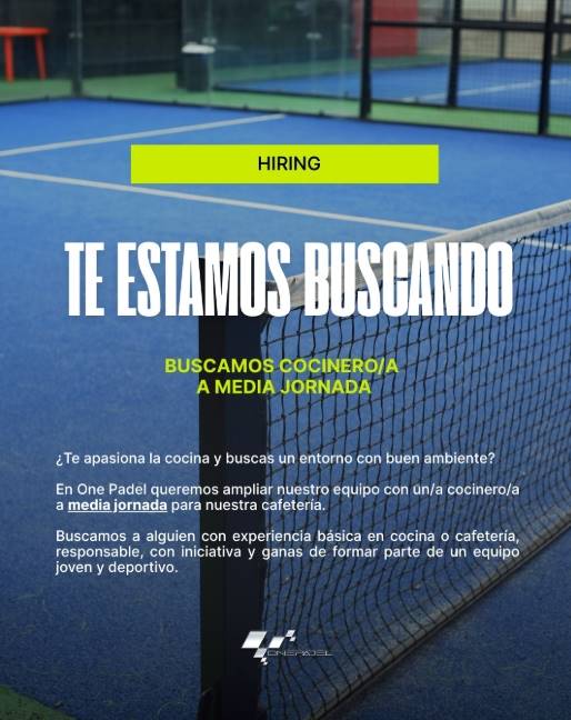 En One Padel ampliamos equipo y buscamos un/a cocinero/a a media jornada para nuestra cafetería.